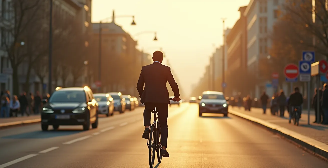 Die visuelle Gegenüberstellung ist frappierend: Auf der einen Seite die Blechlawine, die sich im Stop-and-Go quält, auf der anderen Seite der fließende Verkehr auf dem Radweg. Für Berufspendler mit einem Arbeitsweg von 12 bis 20 km bedeutet dies eine fundamentale Neubewertung. Die gefühlte Überlegenheit des Autos löst sich in der Realität der urbanen Verkehrsströme auf. Das E-Bike wird so vom Freizeitgerät zum strategisch überlegenen Werkzeug für den täglichen Weg ins Büro.